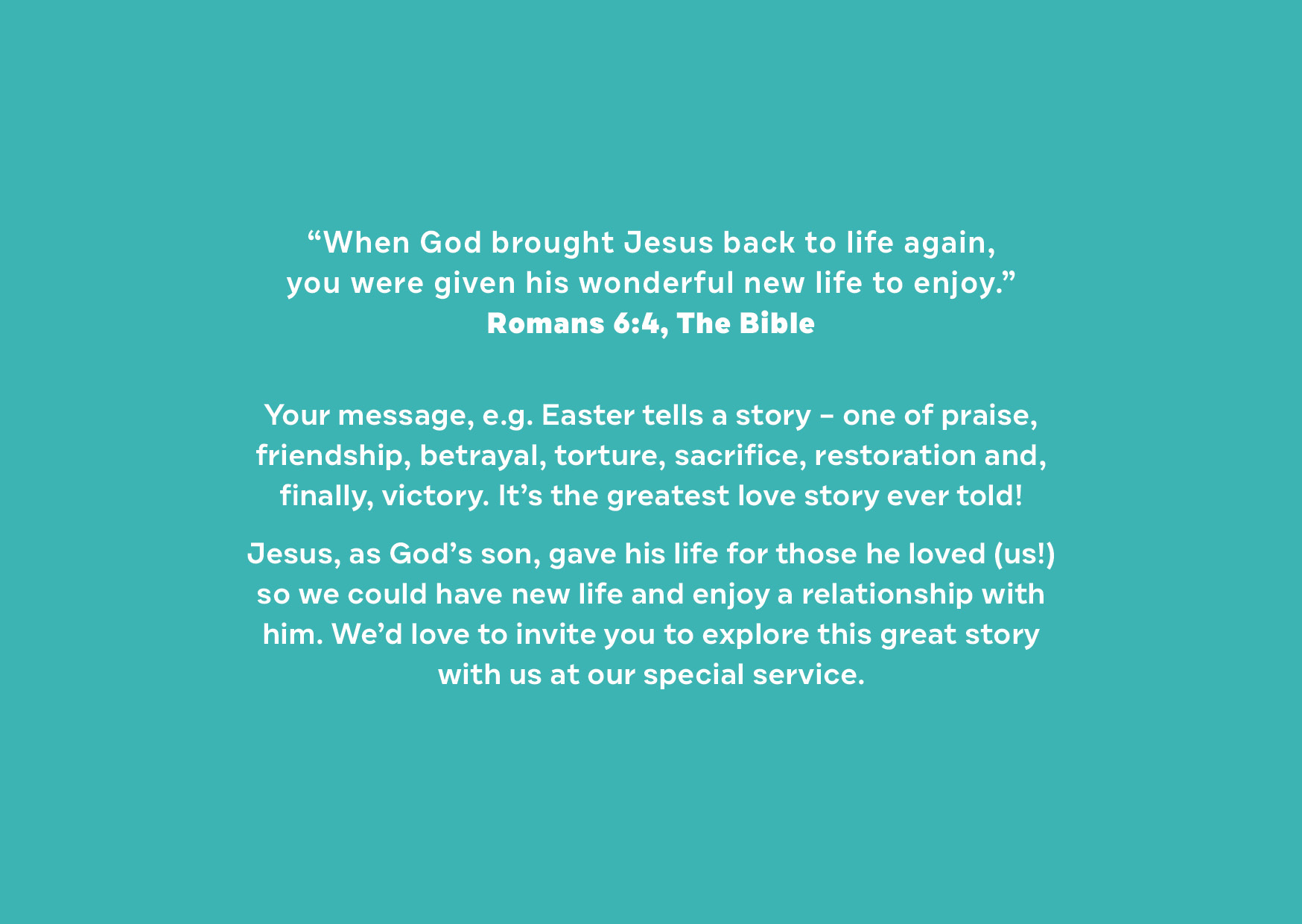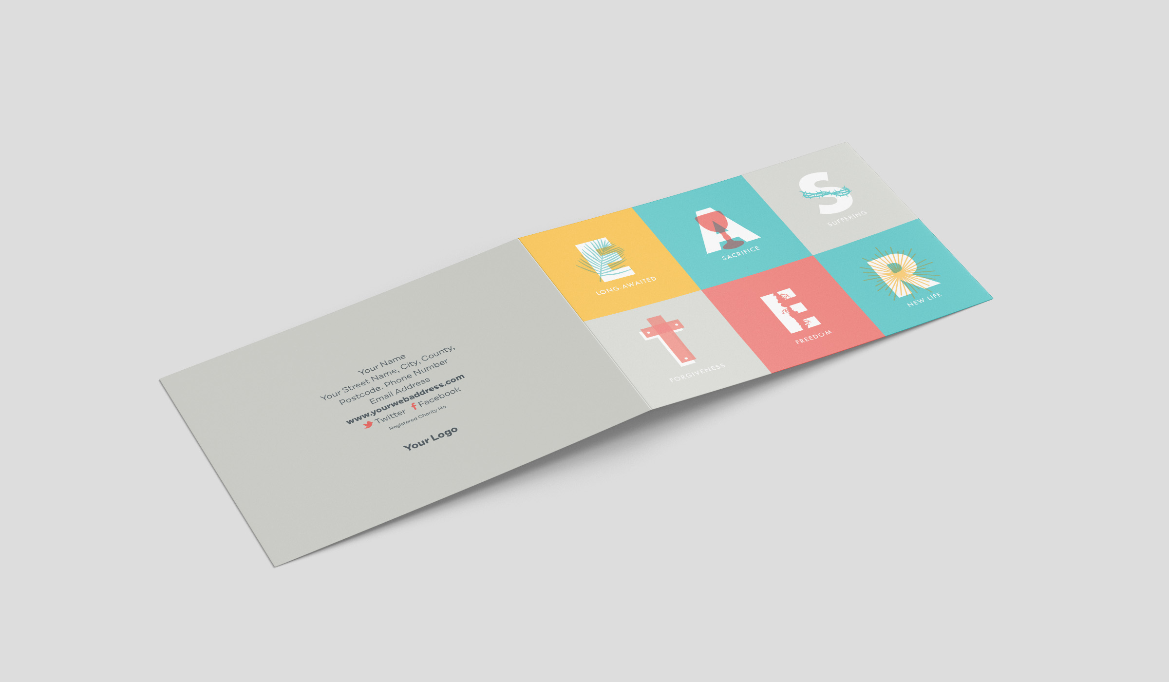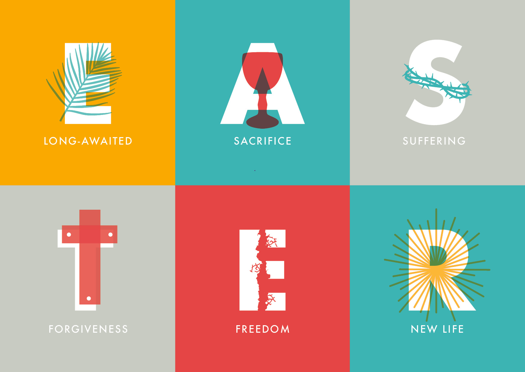 These six words explain the different parts of the Easter story, from Jesus’ triumphant entry right through to his resurrection. Another option is available with 6 different words. You can choose the colour palette from either.