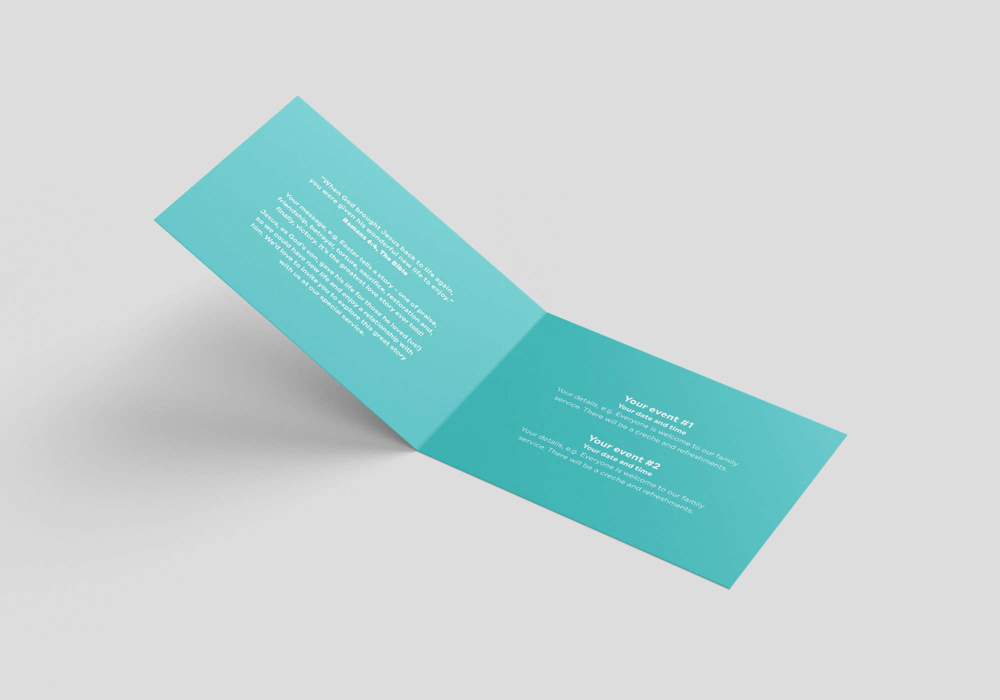 4-page A6 Landscape, folds in two horizontally. Any problems ordering? Just email us what you'd like on the flyer/poster and we'll sort it out. We'll always email you a proof to check before printing.